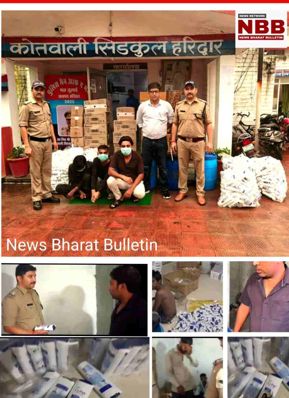 सिडकुल थाना पुलिस ने कार्यवाही करते हुए मकान में छापा मार कर बडी कंपनियों के नाम के डुप्लीकेट शैंपू बनाने वाले फैक्ट्री का भंडाफोड किया। तीन आरोपितों को मौके से गिरफ्तार कर पंद्रह लाख से ज्यादा का माल बरामद किया। पूछताछ करने के बाद आरोपितों के विरुद्ध संबंधित धाराओ में मुकदमा दर्ज कर कोर्ट में पेश किया।